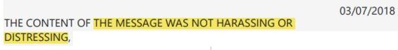 The reason for their visit was given in a police report as being that I had sent a woman a single text message that was described as