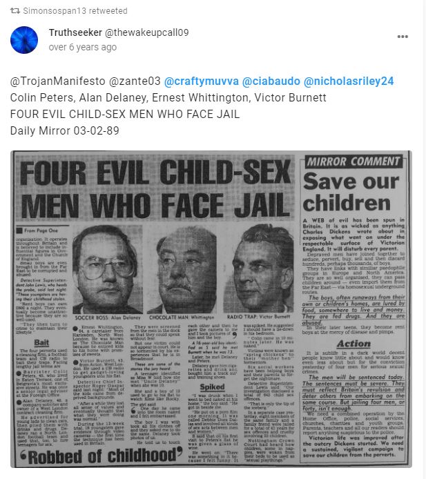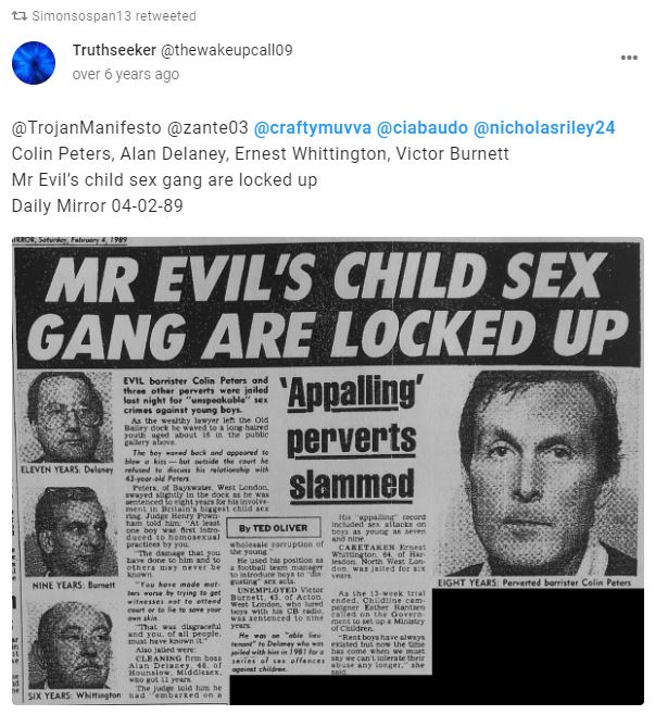 He re-tweeted two old posts about a convicted paedophile, Alan Delaney.