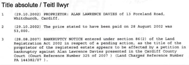 Firstly they said that when I purchased the house, I purchased it from Gareth Edwards