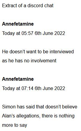 In an extract from a chat in Discord, someone asked the user why Simon would not give his point of view.