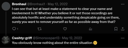 In 2022, Simon Griffiths posted the following video on social media saying he knew nothing about the horrific noises that had been recorded.