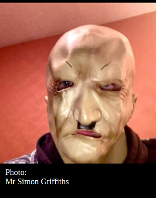 Simon Griffiths posts pictures of himself on social media that show him wearing a mask, some have a Hitler-style mustache drawn on them.