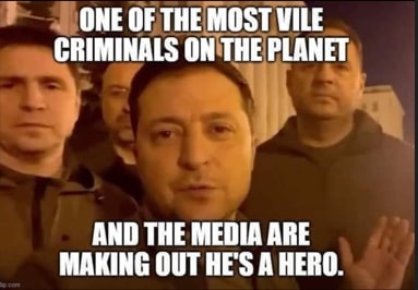 He refers to Adolf Hitler, Jimmy Saville, Ukraine President Volodymyr Zelensky, Russia's Vladimir Putin, and others.