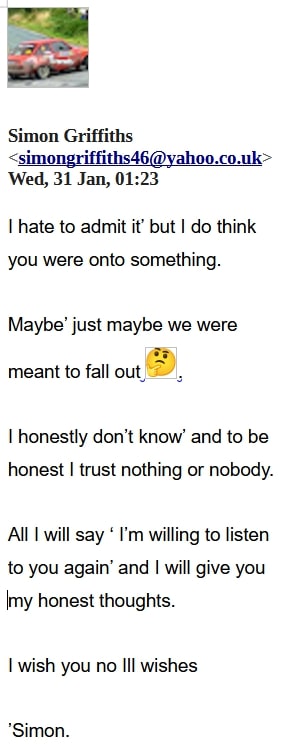On the 31st January 2024 Simon Griffiths sent me this email.