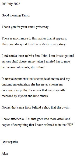In the civil court case between Gareth Edwards, Jane John, and myself, Jane and Gareth made several counterclaims.
