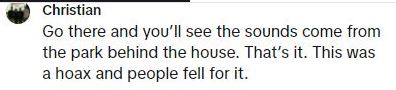 The commenter is known to me, they were one of the people who went to the house to record noises.